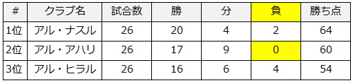 優勝したアル・ナスル相手にも2戦2勝していたのだが、引き分けが多かったのが響いてまさかの2位…。もちろん計算上はありえることだろうが、1年間で一度も負けなかったのに優勝できないというのは選手としてはやるせない気持ちかもしれない…。