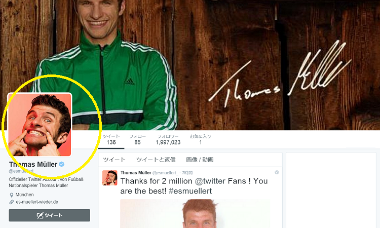 なぜこの写真をチョイスしたのかは皆目不明だが、ミュラーの明るさとお調子者感だけは分かるプロフィール画像だった。