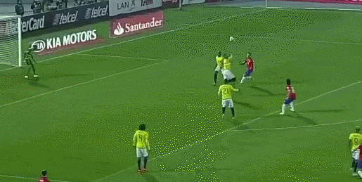 ボックス外でボールを拾ったアレクシス。得意の切り返しでゴールに迫るも、相手選手4,5人に囲まれてシュートを打てず。やはり相手チームからは相当に警戒されているようだ。彼の出来もチリの行く末を左右する大きなファクターのはず。今後のプレーにも注目したい。