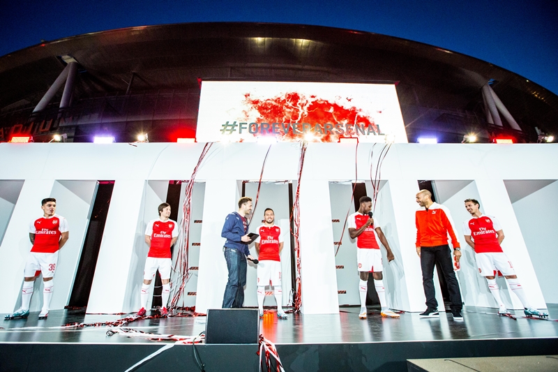 16日にアーセナルのホーム、エミレーツ・スタジアムで行われた新ユニフォームお披露目の様子がこちら。