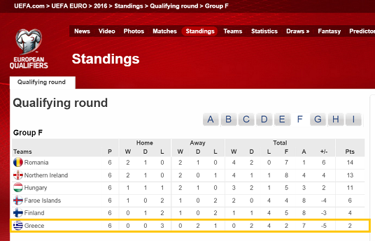EURO予選:ギリシャ 0 - 1 フェロー諸島 ⇒負け
