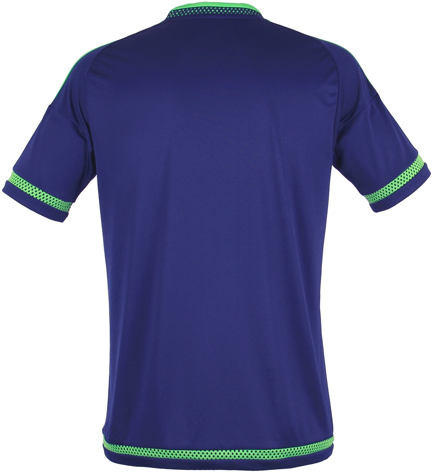 背面は紺一色だがパンツとソックスは緑を基調としており、印象的なカラーリングを考慮してクラブエンブレムやロゴなどは白で統一されている。