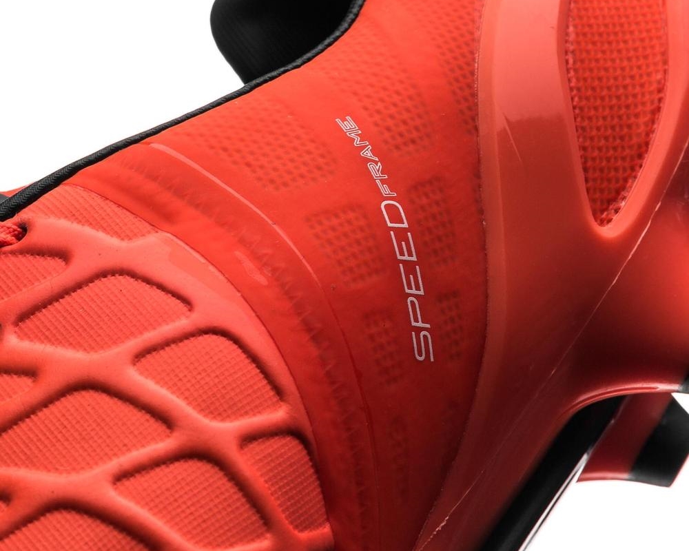 中足部の両サイドに新たに搭載されたスピードフレームサポートは、素早いターンなどスピード系モデルに付きものの動きに対して安定性を発揮。岩渕のような選手にもピッタリの機能だ。