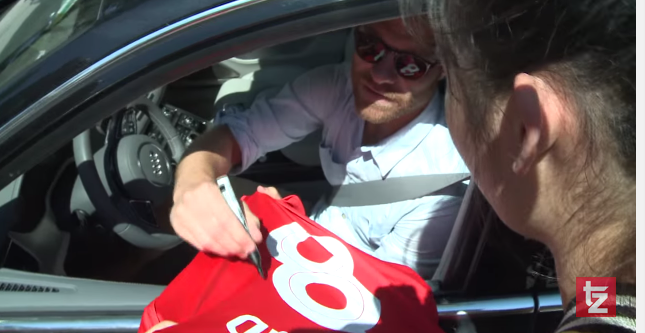 他の選手のユニフォームにサインをするというのはあまりないことだろうが、ジェラードとは親友と認め合う間柄だけにファンの女性とも何やら笑顔で会話し、快くサインしていたアロンソであった。