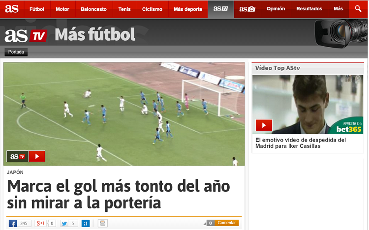 【外部リンク】AS - Marca el gol más tonto del año sin mirar a la portería