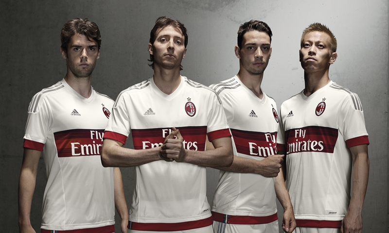 ミランのアウェイといえば白! それ以外ありえないほどの絶対的なカラーで、2015-16モデルももちろん変わらず。