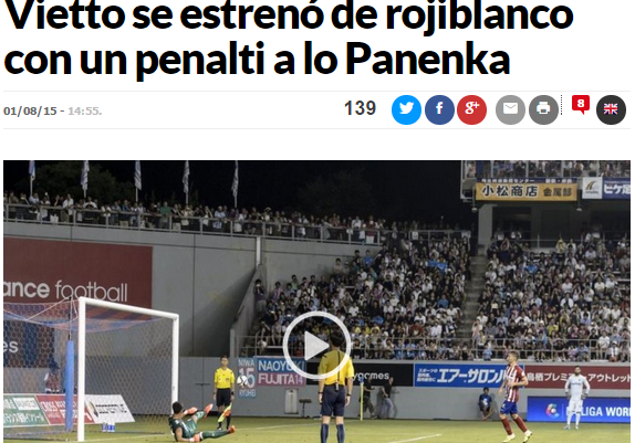 — Atlético de Madrid (@Atleti) 2015, 8月 1PK戦で魅せたのが、パネンカを落ち着き払って決めたアトレティコFWルシアーノ・ビエット。
