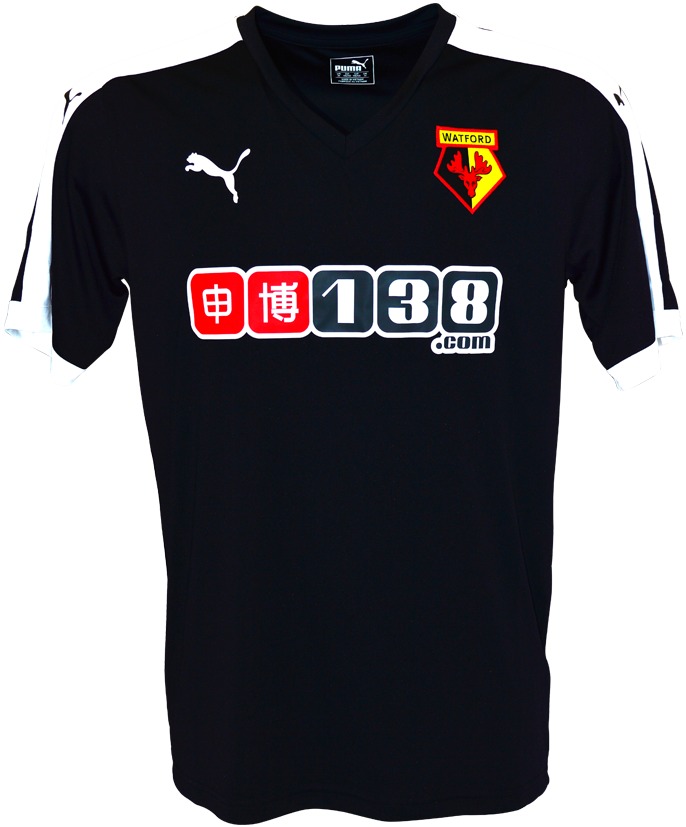 ボーダー柄のホームに続いてお披露目されたワトフォードの2015-16アウェイは、黒を基調にしたシンプルなデザインが特徴。