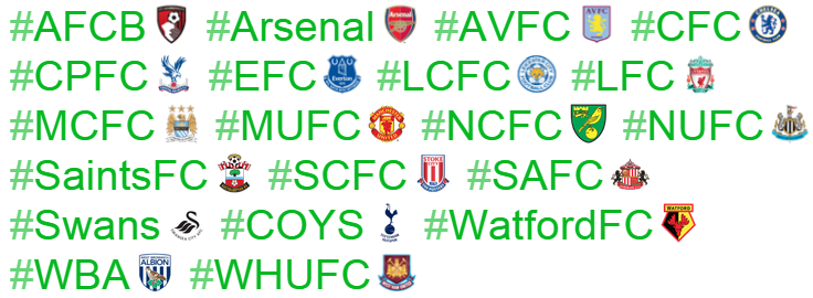 さらに、開幕戦の対戦カードに対応したハッシュタグを入力すると、こちらも対戦する2チームのエンブレムが並べて表示されるという(マンチェスター・ユナイテッド対トッテナムであれば、 #MUNTOT )。