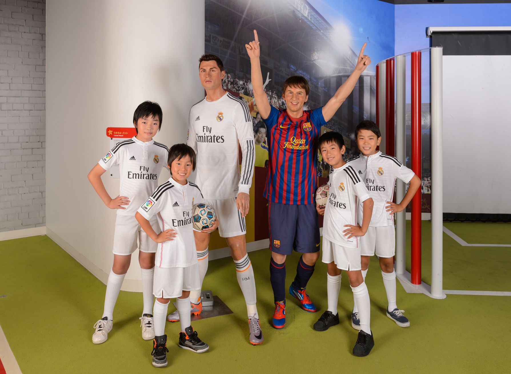 マダム・タッソー東京オリジナルのサッカーユニフォームを着て写真撮影ができたり、ペナルティーキックの体験型アトラクションが設置されており、見て・触れて・体験して楽しめると言う。