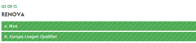クイズは全部で15問あり、15の“名前”が表示される。それが、「予選を含めた今季のEL出場チームの名前か、それともIKEAで買える商品の名前か」を当てるというものである。