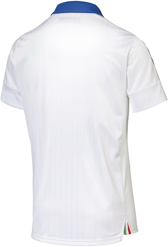伝統的な白を基調に、イタリア国旗カラーのストライプを正面中央に配置。“アッズーリ”の伝統とともに、衰えることのないカルチョの情熱と誇りを表現したデザインとなっている。