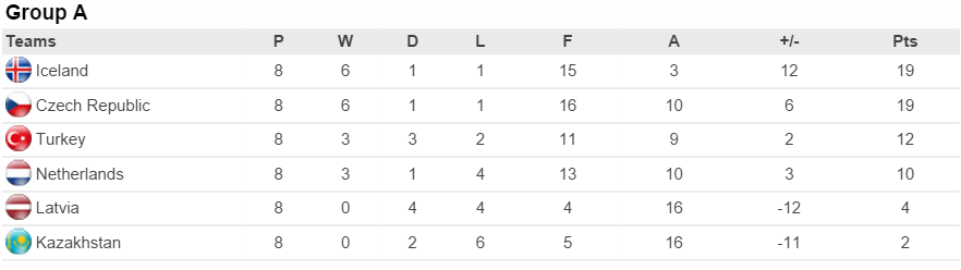 次節のチェコ戦に勝利し、オランダがカザフスタンに引き分け以下であればトルコの3位が確定(その瞬間オランダの敗退が決定)。