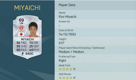 そして、今季ザンクト・パウリに移籍した宮市亮が13番手にランクされている。スピード(PACE)の値は10位だった前作と同じ。