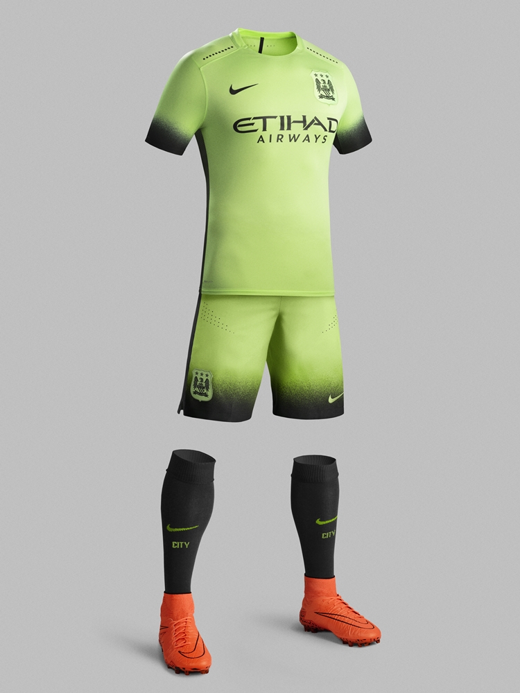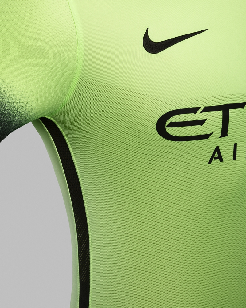 シティの2015-16サードも先日発表されたバルサ、インテル同様、グラデーション(ぼかし)を取り入れた「Night Rising」というデザイン。