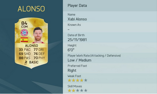 5位 シャビ・アロンソ 88 CDM バイエルン・ミュンヘン スペイン