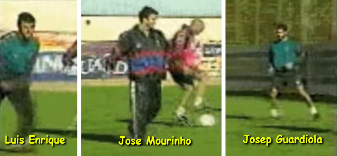 6秒あたりから出てくるのは、おそらくルイス・エンリケ。そして、その次に立ち向かっているのはモウリーニョだろうか。さらに、最後にはジョゼップ・グアルディオラの姿もあるように見える。