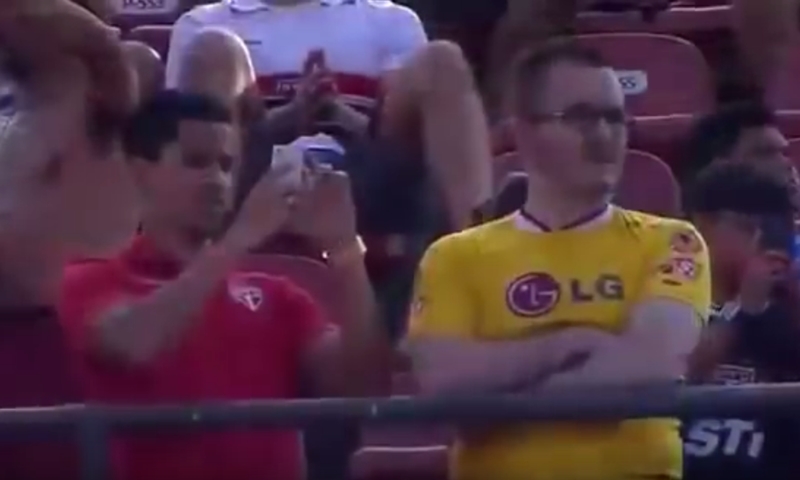 相手は同じサンパウロに本拠を置く強豪パウメイラスであり、“闘い”を前にまさかのワンコ登場でサポーターも戸惑いを隠せない様子が映像からうかがえる。