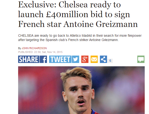 そんななか、『express』では、アトレティコ・マドリーのアントワーヌ・グリーズマンの獲得を狙っていると伝えている。