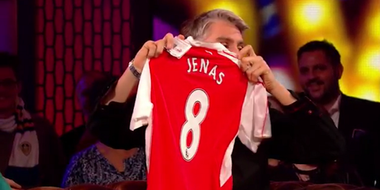 .@jjenas8 wipes his nose on an @Arsenal shirt! Ex-@SpursOfficial star show his allegiance when given a Gunners top. https://t.co/V83e4wq2S4