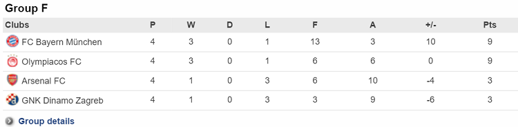 しかし、アーセナルがこの日ディナモ・ザグレブに勝利しても、勝ち抜けが消滅する可能性がある。裏で行われているバイエルン対オリンピアコスの試合で、オリンピアコスが引き分け、あるいは勝利で試合を終えた場合だ。