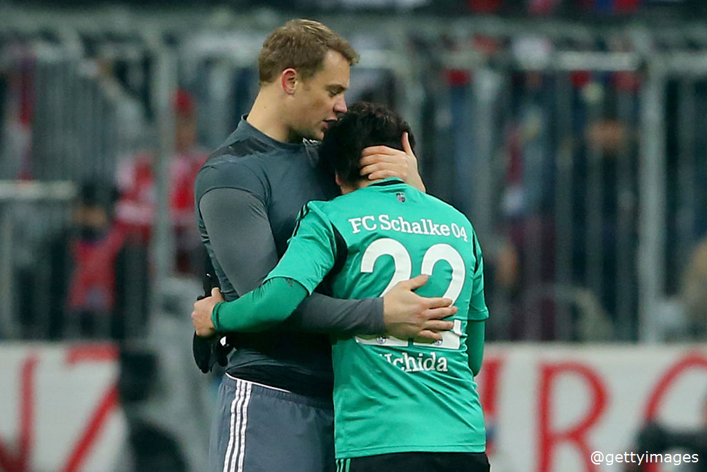 そのハノーファー戦の翌週、シャルケは敵地でバイエルンと対戦。試合後、かつてのチームメイトであるマヌエル・ノイアーと抱擁したが、その身長差から抱きかかえられるような格好になった。試合は1-1のドロー。
