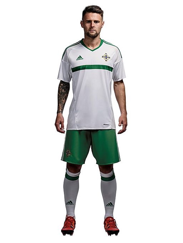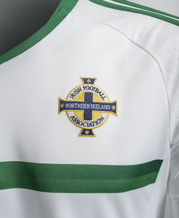 北アイルランドのアウェイユニフォームは伝統的に白基調と青基調の2系統があり、前モデルでは青を採用。