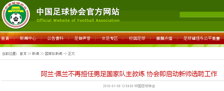 8日、CFA(中国サッカー協会)は公式HP上で、アラン・ペランがもはや監督ではなくなったことと、すぐに新たな監督探しを始めることを発表した。