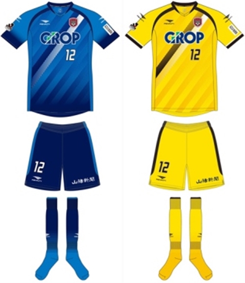 GKユニフォームは、ホームが“晴れの国”岡山の「青空」をイメージしたシアンブルー。アウェイは引き続き黄色を採用している。