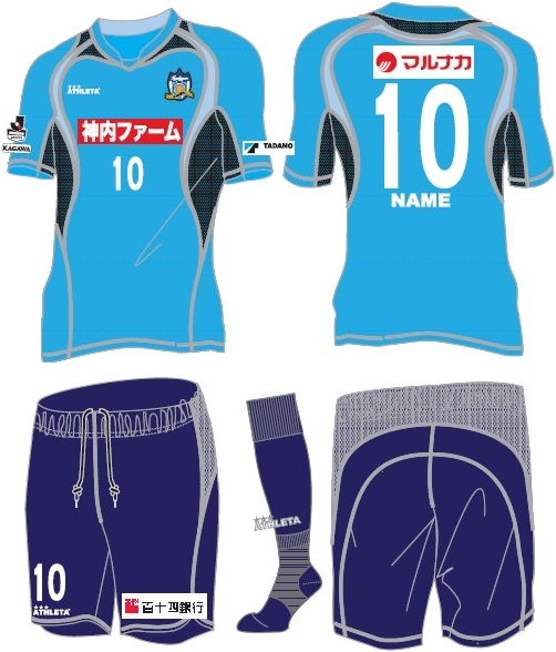讃岐の2016シーズンに向けた新ユニフォーム、ホーム(1st)はクラブカラーである水色を基調にしたデザイン。 身頃には瀬戸内海の波を表現した地紋が入れられている。