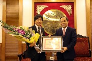 授与式には、文化スポーツ観光省を代表してレ・カイン・ハイ次官が出席。約2年間にわたり代表監督を務めた三浦氏の苦労をねぎらうと共に、ベトナムサッカーの発展に努めたこれまでの貢献を称えて、記念のメダルと表彰状を授与した。