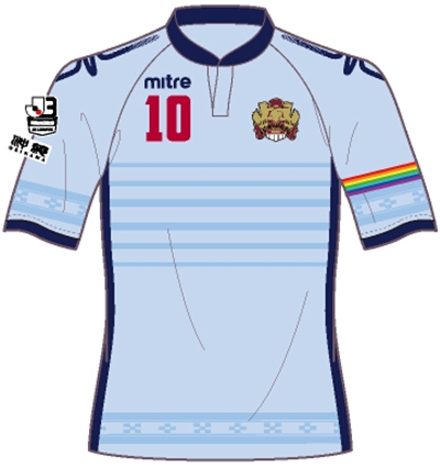 アウェイ(2nd)は、薄い青?を基調にしたデザイン。ホームと同じテンプレートで首まわりは昨季と同じく立て襟だ。