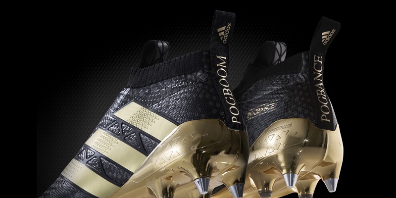 adidasのコントロール系“シューレースレス”モデル、『エース 16+ ピュアコントロール』。 ポグバカラーとして彼の髪色に触発されてか、黒を基調にゴールドと組み合わせている。