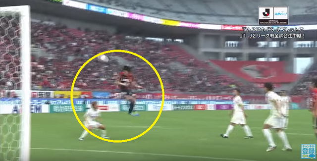 すると柴崎がこれに反応するのだが、その跳躍力にご注目!広島MF柏好文の背後から現れると、驚異的なまでのジャンプでこれに合わせ勝ち越し弾をゲットした!