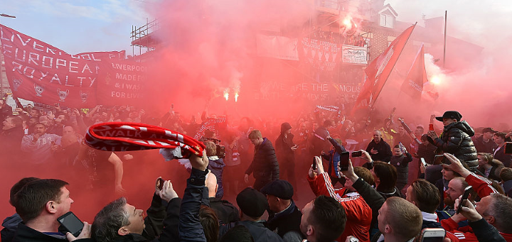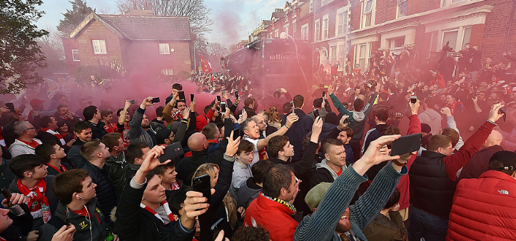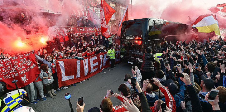 試合が行われるアンフィールドに向かうリヴァプールのチームバスは、レッズサポーターたちから物凄い激励を受けていたようだ。