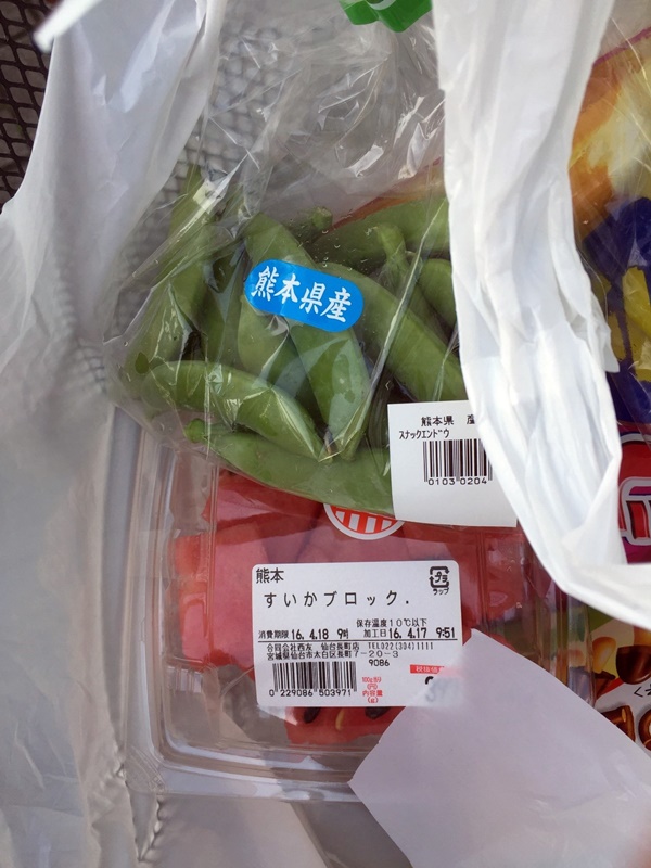 この時期にスイカが食べられることに驚き。そして「スナックエンドウ」。スナップエンドウとはどう違うのか。スナックのように食べられるのだろうか。気になる…。