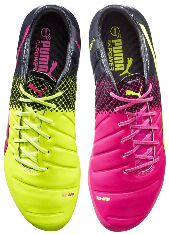 昨年の「トリックス」では『エヴォスピード』と『エヴォパワー』で左右にそれぞれ別の色を使用していたが、今回はどちらも右足がセーフティイエロー、左足がピンクグローとなっている。