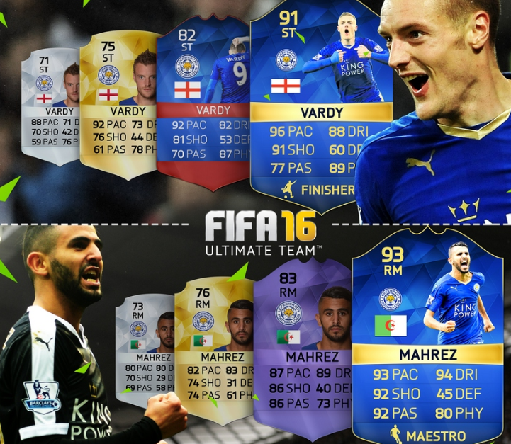 そして、チームを牽引したジェイミー・ヴァーディとリヤド・マフレズの2人もゲーム上での能力値がアップしていった形だ(青のカードは限定)。