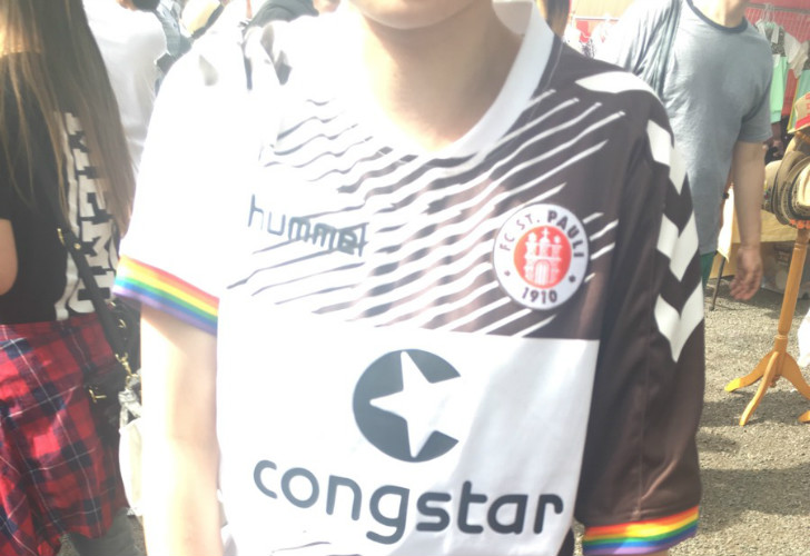 また、ドイツのロック野郎ことザンクト・パウリのアウェイ・ユニフォームもお目見え。こちらは襟口がレインボーフラッグ色になっている。同クラブは、「同性愛差別反対」を打ち出しており、2013年には性の多様性への支持を象徴するため、レインボーフラッグをホームのミラントア・シュタディオンに掲揚している。