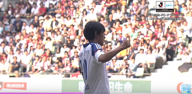 30mほど距離があったもののゴール前に正確なボールを供給し、最後は栗原勇蔵がヘディングでシュート!