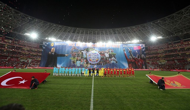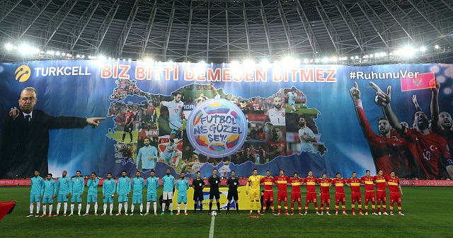 横断幕に書かれていた"Biz bitti demeden bitmez"という文字はトルコ代表の標語のようなものだそうで、EUROを控える選手たちに向けたエールであったようだ。