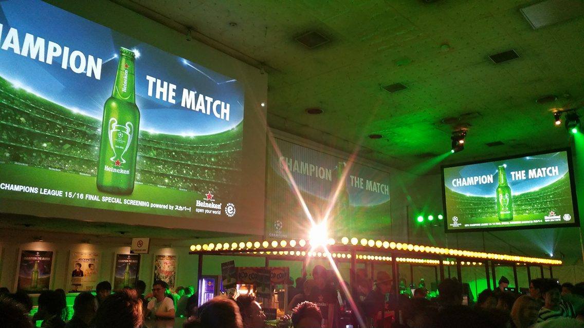 2015-16シーズンのUEFAチャンピオンズリーグ決勝が行われた28日夜、東京でも大規模なパブリックビューイング(PV)が行われた。その様子をお届けしたい。