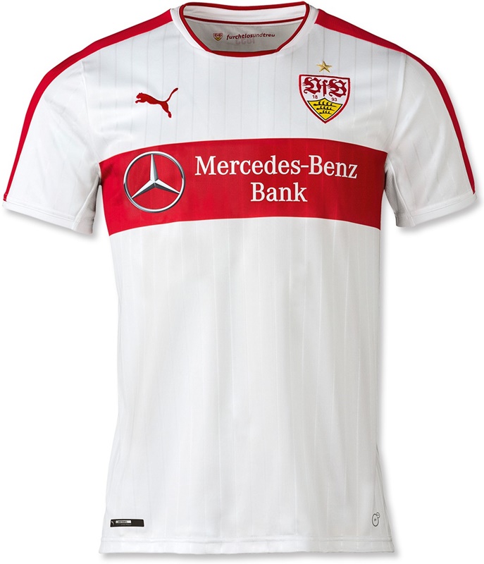 シュトゥットガルトの2016-17シーズンに向けた新ユニフォームは、白を基調に赤いパネルが入った伝統のデザイン。同じく赤が配された肩のフォームストライプも印象的な仕上がりだ。