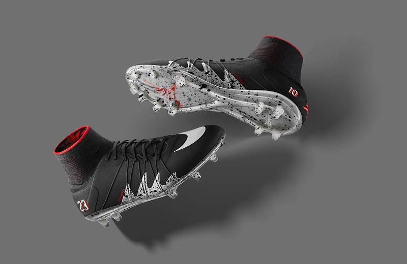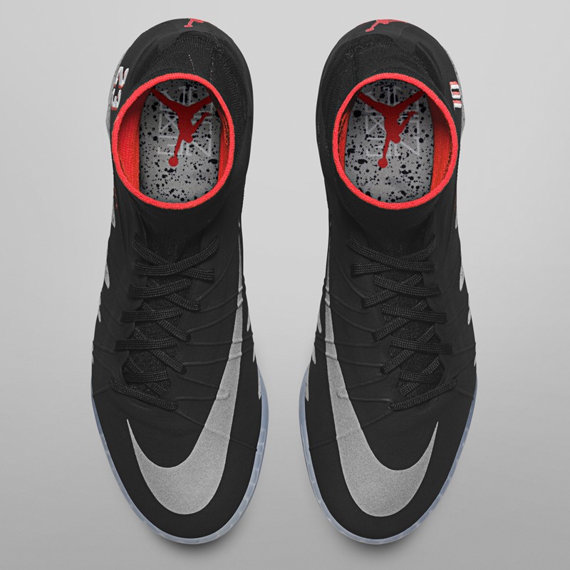 「ハイパーヴェノム」のトップモデルをベースに、ジョーダンの象徴であるジャンプマンが入れられた逸品。デザイン自体もネイマールのお気に入りである『エア ジョーダン V』からインスピレーションを受けたものとなっている。