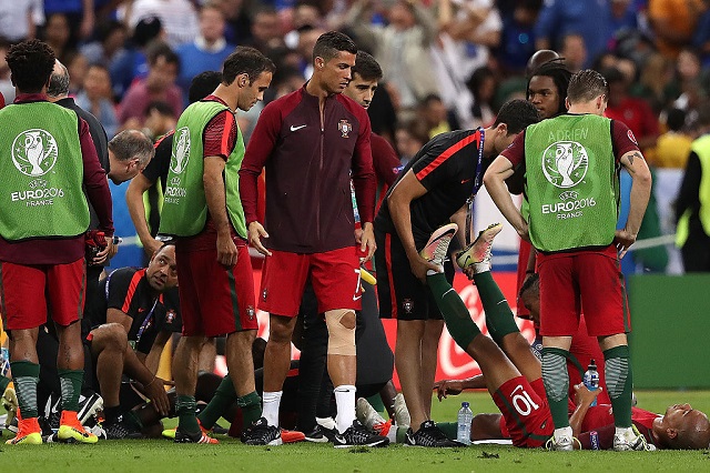 開始早々、ディミトリ・パイェットとの接触で左足を負傷し、25分でピッチを後にしていたロナウド。