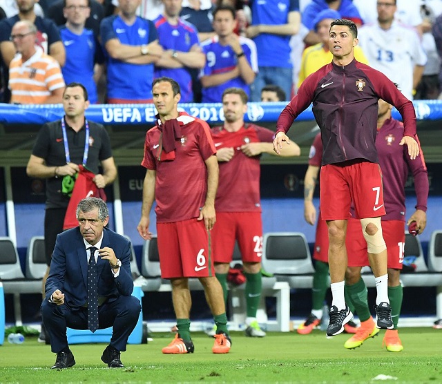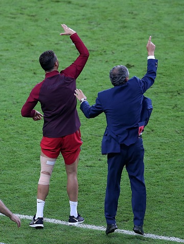 足を引きずりながらもラファエル・ゲレイロに近付き、何か指示を送るロナウド。