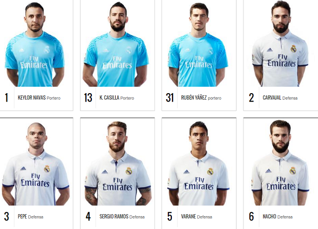 他にもダニ・カルバハルが2番(昨シーズンは15番)に、ラファエル・ヴァラヌが5番(昨シーズンは2番)にそれぞれ変更されている。