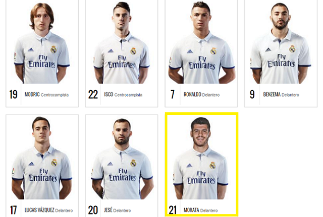 公式ホームページ上では新ユニフォームに身をつつんだ選手たちの写真が掲載されているのだが、ユヴェントスから復帰することになったアルバロ・モラタの背番号が明らかになっている。