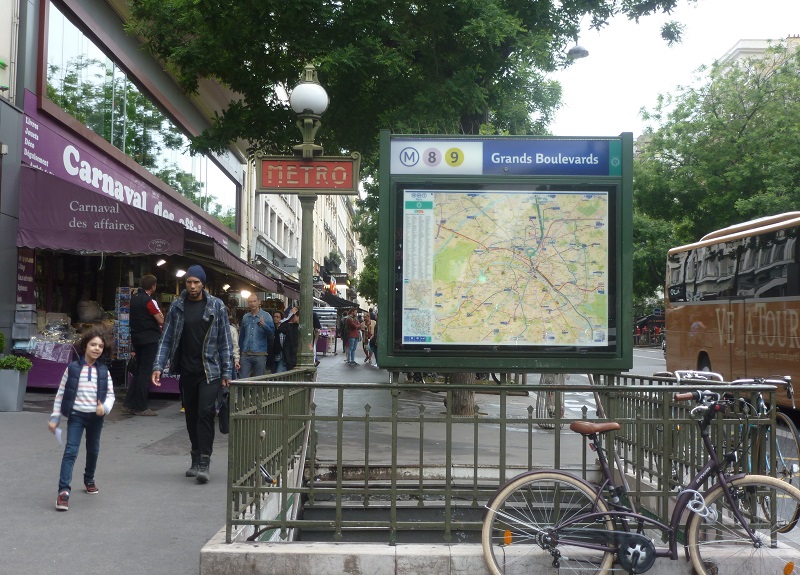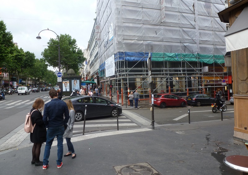 パリメトロ8,9号線上のグラン・ブールバール駅付近に、目的のレストランがある。上記画像の出口から出て下記画像から右に向かうとシャルティエに辿り着く。