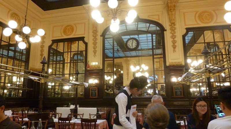 19ユーロ(およそ2212円)でコース料理(パリジャン曰く定食みたいなもの)を頼めるので、おばちゃんギャルソン(女性だと正しくはセルヴーズ)に料理を注文した。おばちゃんはとても元気な方で、早口な英語で料理の説明をする。テーブルクロスに注文を書き、そそくさとシェフに注文を伝えに行った。メモしないで頭にメニューを叩き込む姿を見て、日本では見られない情景だと感心した。